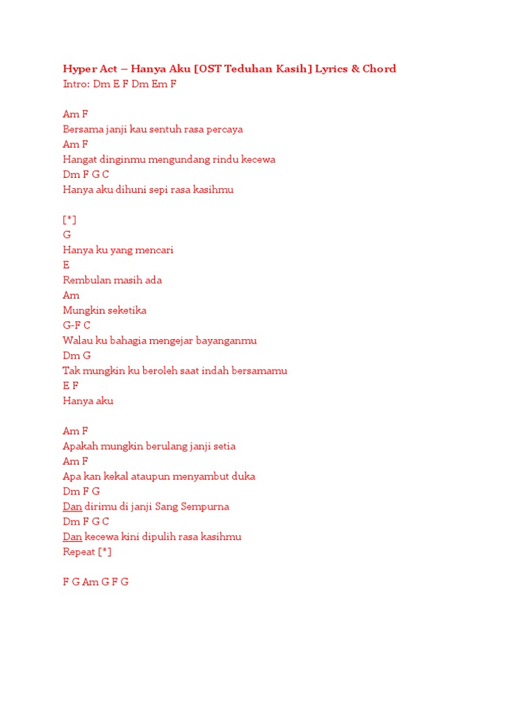 Chords For Ost Teduhan Kasih Hanya Aku Hyper Act Kord Lirik